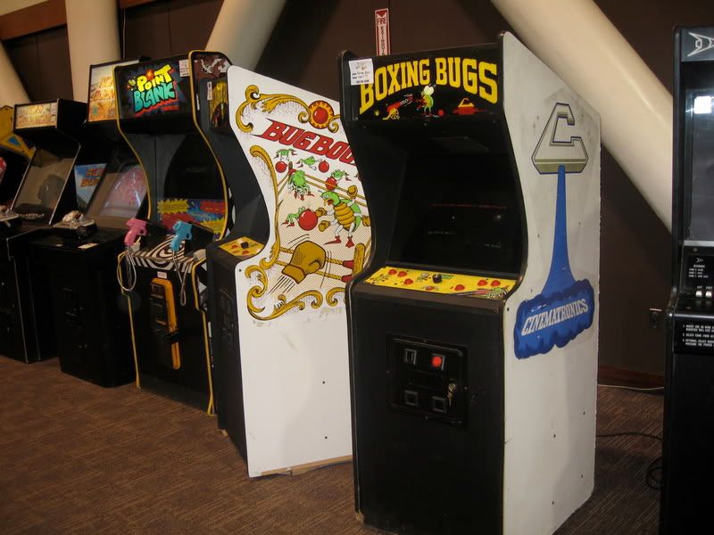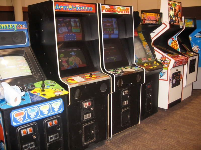In Gameroom:Ms Pac,Rush The Rock X4 linked,Gorf,Qbert,Space Invaders,Moon Patrol,Subroc 3d,Robotronmulti,Sprint2,Phoenix,Asteroids Deluxe,MissileCommand,Tempest,Assault,Space Fury,Tac/Scan,Millipede,Star Wars,Tron,Gaplus,Galaga,R-Type,and Trak and and Field. |