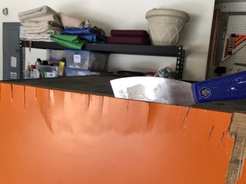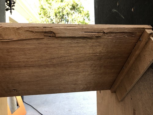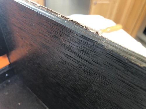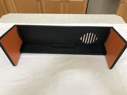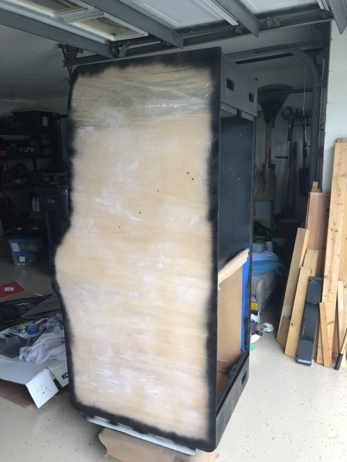6) Cabinet solid, but de-laminating. Has back door.