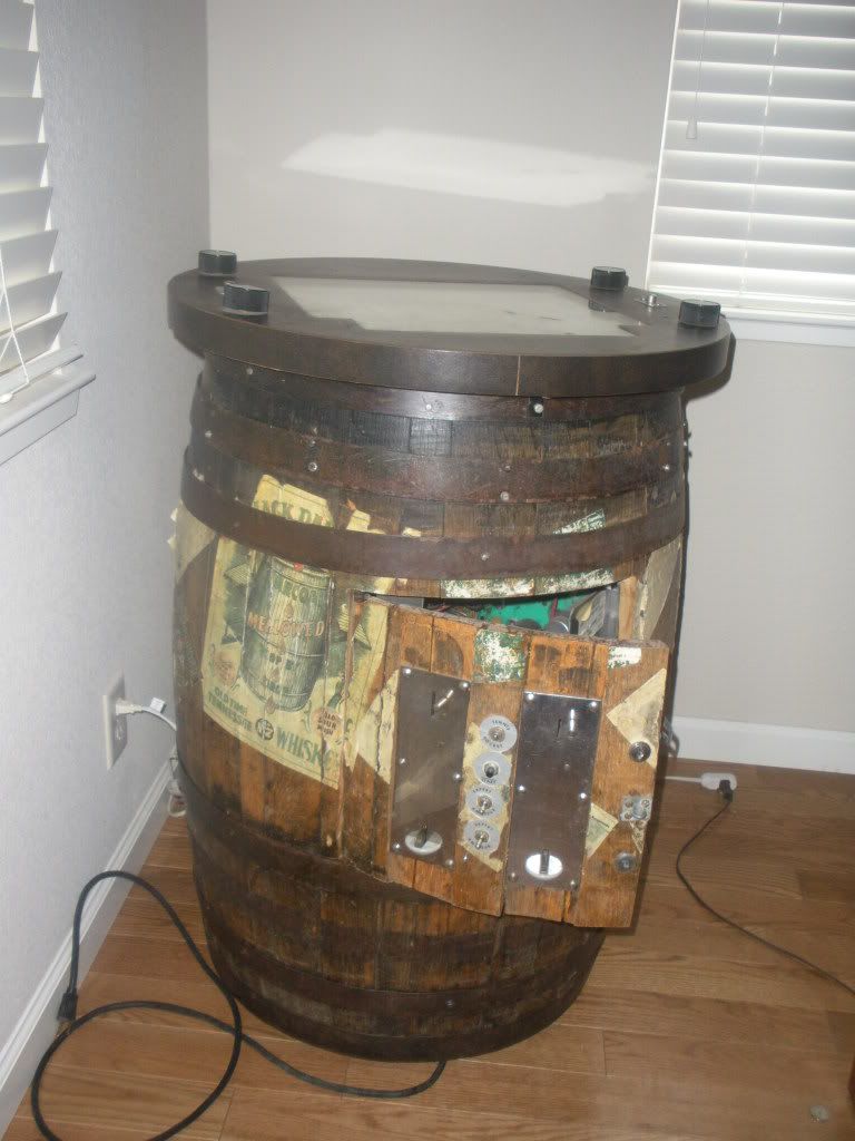 Looking at the construction of the barrel (is it me, or are those switches not lined up?), I'd say it's an operator's hack job. He had a unit in a cocktail, saw an Atari 'pong in a barrel' and then transplanted his cocktail into a barrel.