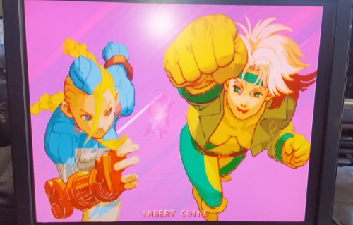 And, some blocks of mis-coloration on Rogue's face and Cammy's body: