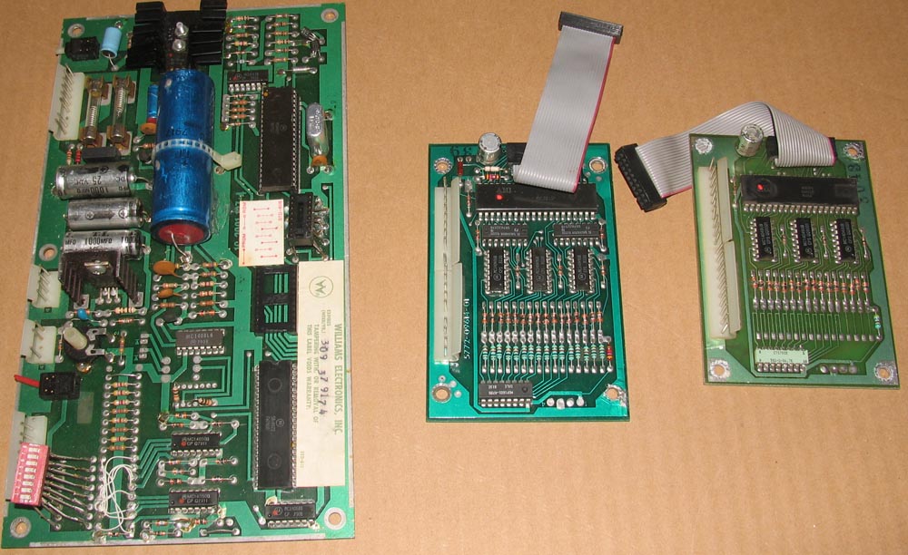 -- A bonus modded sound board from the early Williams pinball era, plus a couple of interface boards.