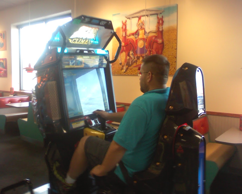 So 2 weeks ago while on vacation I took the kids to the Utica Zoo (woo hoo!) and afterward we hit the Utica Chuck E Cheese. They had a few Atomiswave cabinets running Metal Slug, KOF, etc., but the fun games were Afterburner Climax and MarioKart Arcade GP.