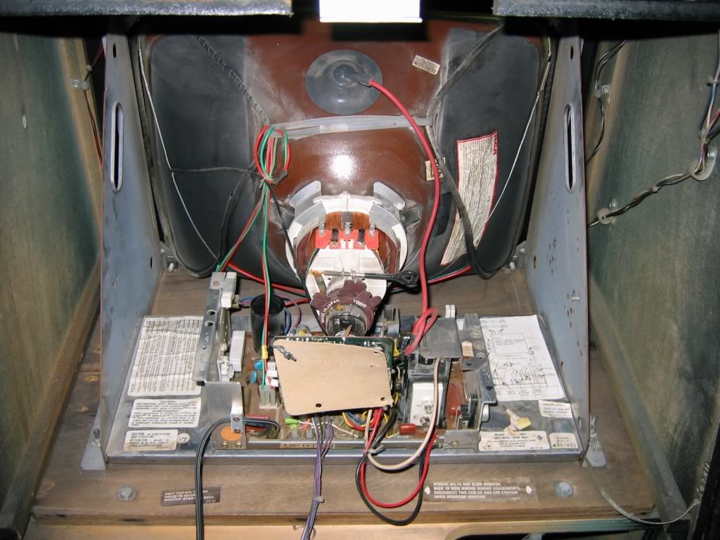 While the glue was drying, I was able to tackle some other things. I cleaned the monitor tube and chassis, and recapped it. The monitor now produces a steady, bright picture. The tube has a fair amount of Robotron screen burn, but it tests good and strong on all three guns, and it's still very clear and bright, so it stays.