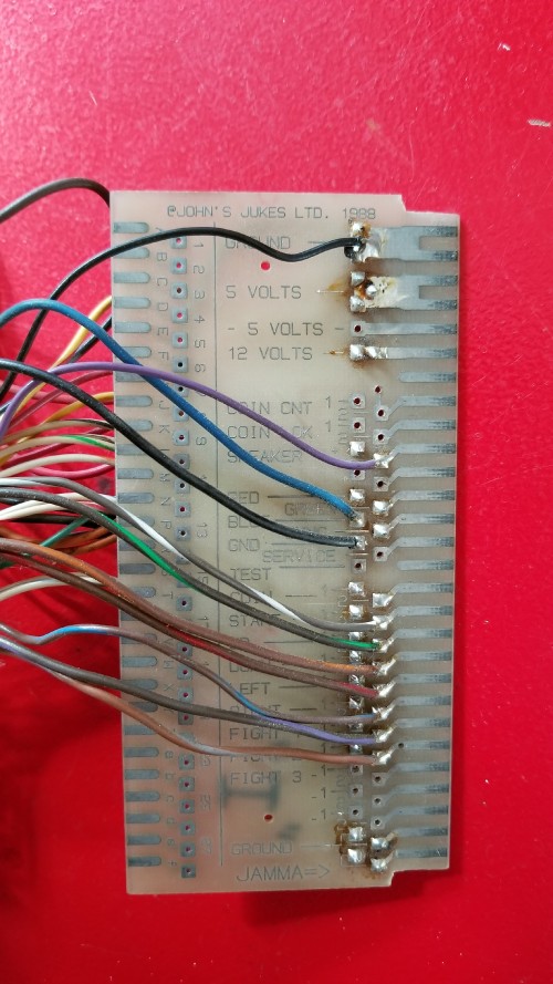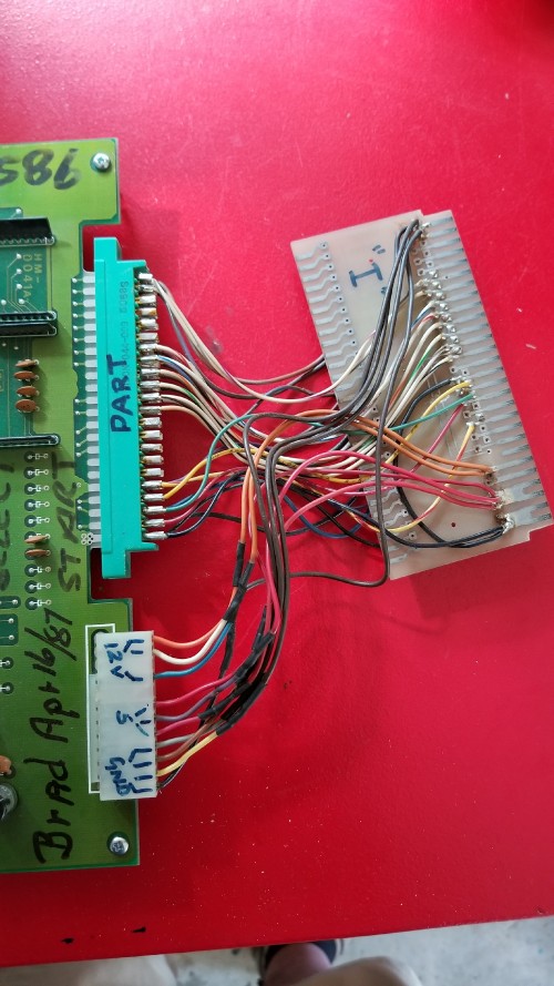 Just today I was going through a box of wire harnesses and other misc parts, and I found this jamma adapter. I wondered if it were for this Arkanoid bootleg board. I most likely got all these boxes of parts and boards from the same place when I bought a truckload of stuff from a guy, so I figured the chances were pretty good.