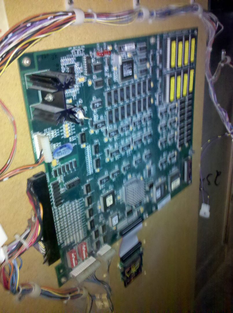 Well, I try to get back into it today. I hope that I can bring up the main menu at least once so that I can go into test mode and maybe find out what is wrong. Well... I power it on, it makes an ungodly sound, and I notice black smoke coming out of the protruding black part of the board that this picture is pretty much centered on: http://img.photobucket.com/albums/v223/the7k/IMG_20111013_165500.jpg