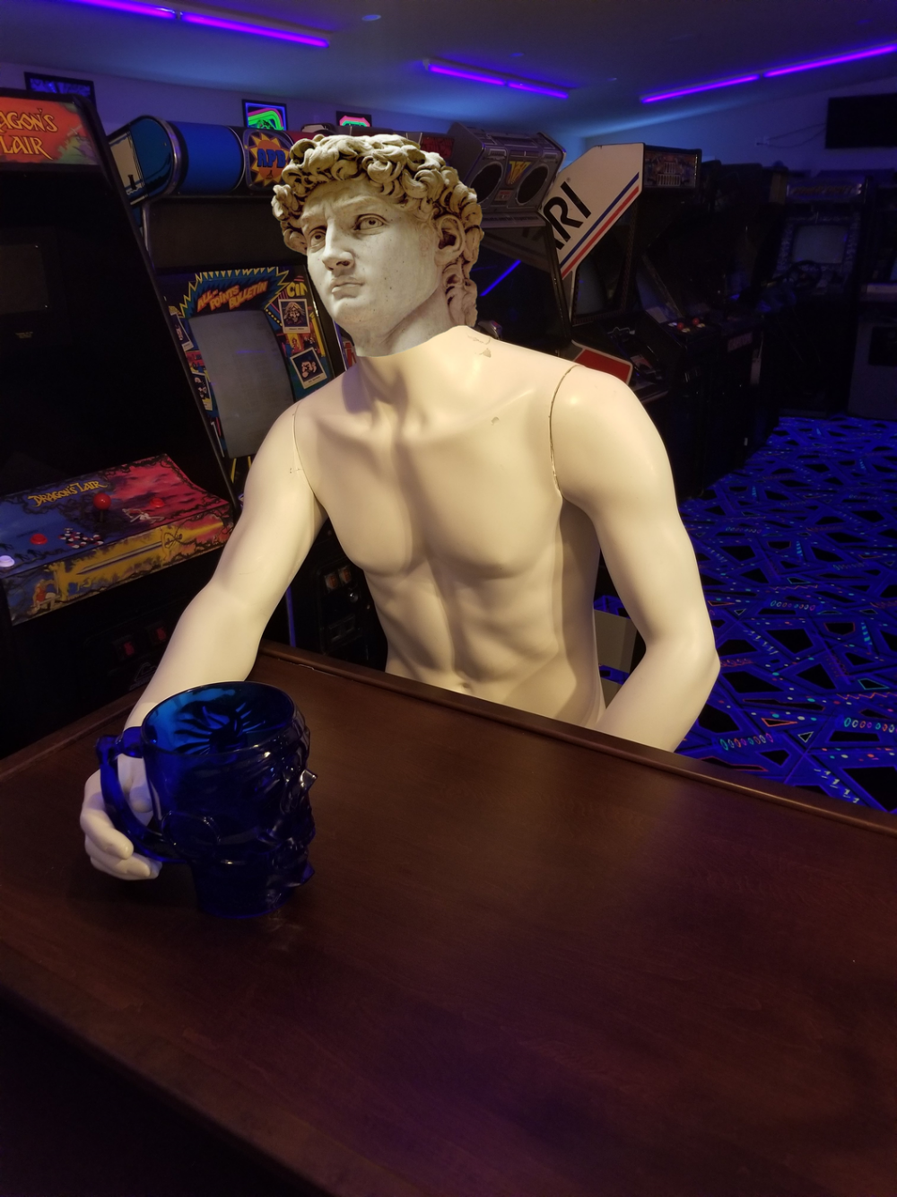 Meet Jack. He needs some clothes and a head but otherwise a great drinking buddy. My wife doesn't like me drinking alone. Well I will never be drinking alone in Short Circuit Arcade again. Haha.
