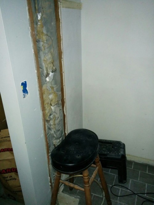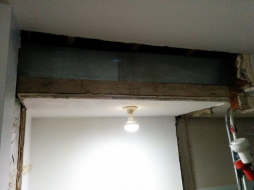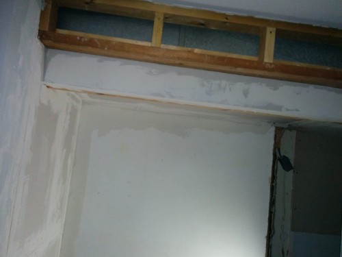 The ceiling in the closet was not the same hieght as the surrounding ceiling so that had to be dealt with. Also I needed to extend the header to match the rest of the wall: