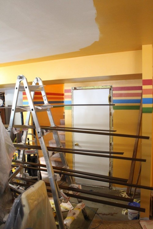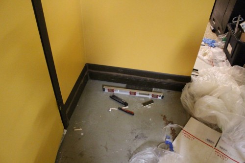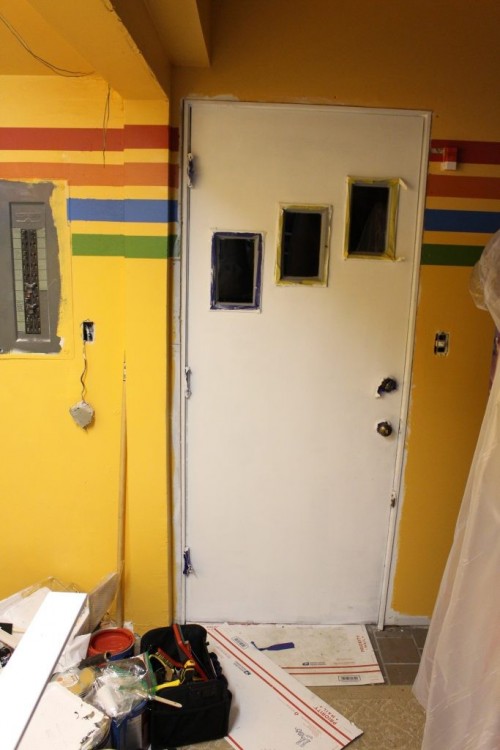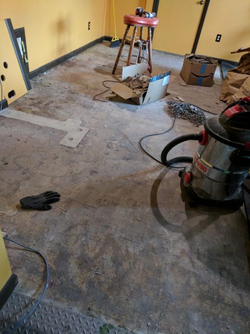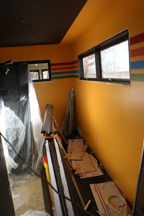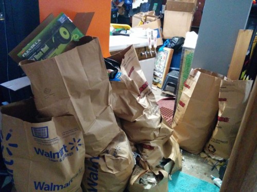 Knocked out the cabinets, capped the plumbing, moved the electrical, and tore out the closet producing lots of waste:
