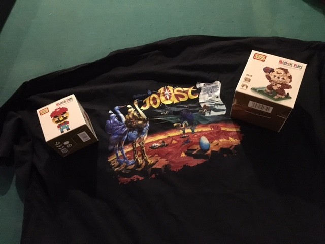 I got a cool Joust t-shirt and some DK character building kits! Going to put them up in my game room. I also got Tempest and Pacman t-shirts for Xmas, so I'll be adding the Joust to the rotation!