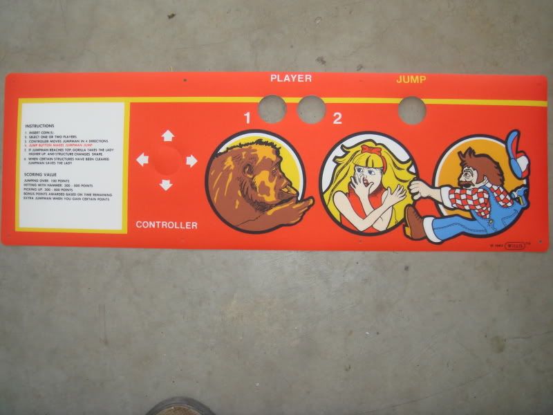 DK jr Kit - Control Panel (missing buttons), Marquee, Monitor plexi, boardset (working), and manual - $160 (boardset picture not shown but included)