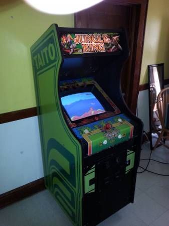 Original Jungle king machine... Stamped in cab and on boards "Jungle king" this was not converted back from a jungle hunt.. its dedicated. Burn free rebuilt monitor . all working . $525 cash takes it.
