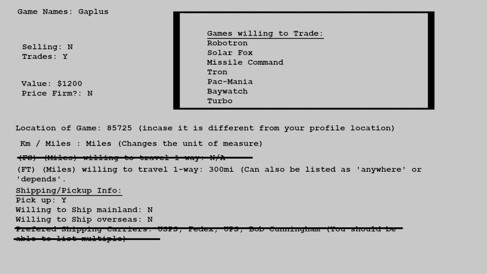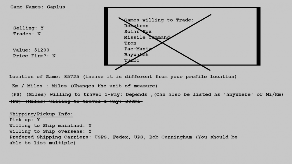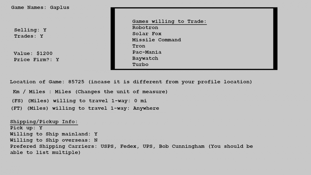 List the ZIP or Town/City of the game for sale/trade. Sometime the game location is different than the sellers profile location.