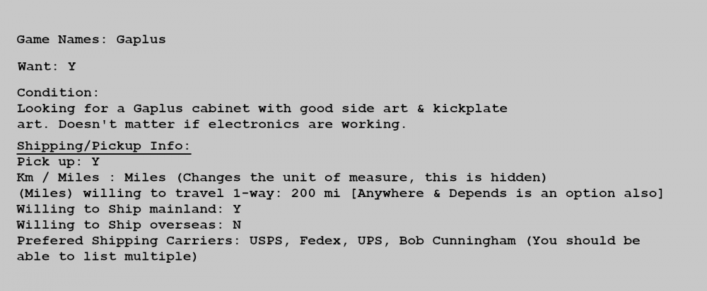 The list of 'Games your willing to Trade' is separate from your 'want list'. You might have a Centipede on your want list. But you may not be willing to trade your Williams Turkey Shoot for one.