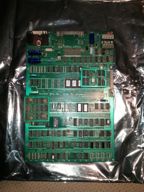 Working Pac-Man board with High Score Save Kit (Madrit) installed.